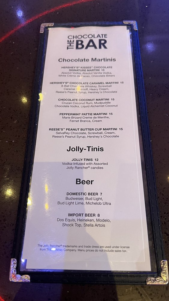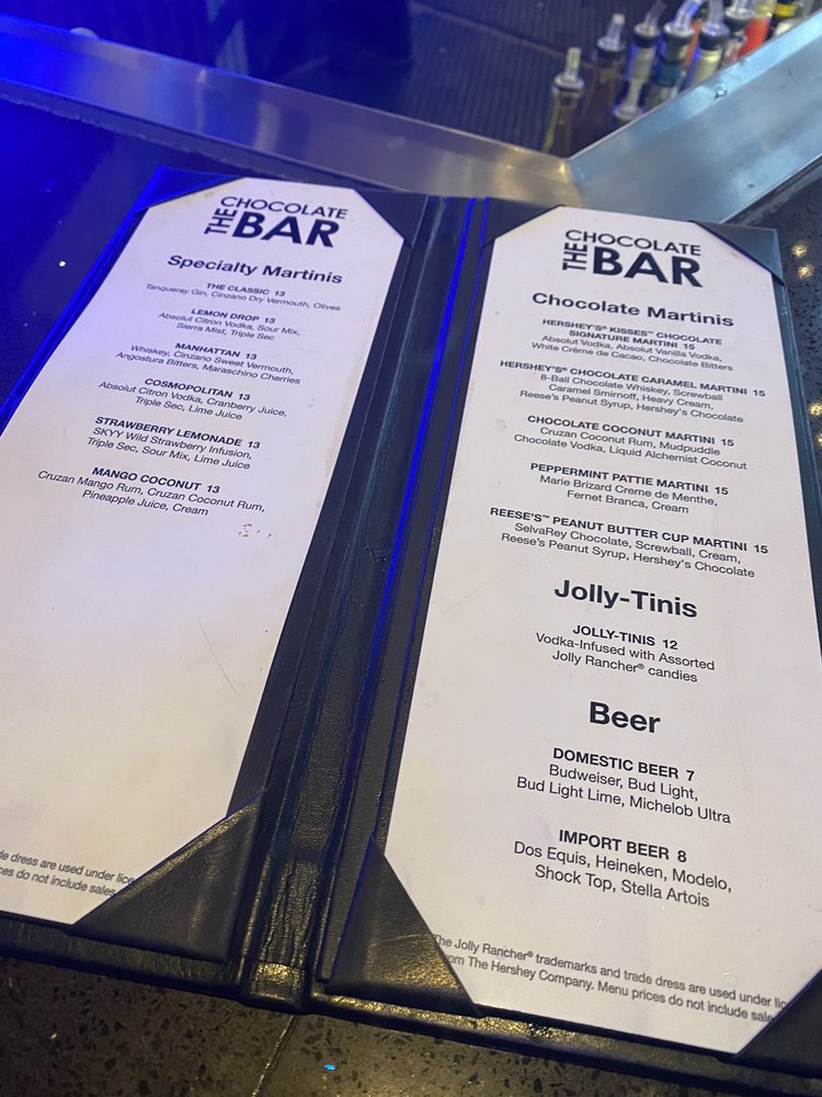 The Chocolate Bar at 3790 Las Vegas Blvd S in New York New York, Las Vegas offers a casual and lively atmosphere, perfect for groups looking to have a good time. With a full bar, outdoor seating, and even a pool table, this spot is a great choice for a fun night out. The menu features a variety of chocolate-inspired dishes that are sure to satisfy your sweet tooth. From decadent desserts to savory dishes with a hint of chocolate, there is something for everyone to enjoy. With options for reservations and bike parking available, The Chocolate Bar is a convenient and exciting choice for your next night out in Las Vegas.